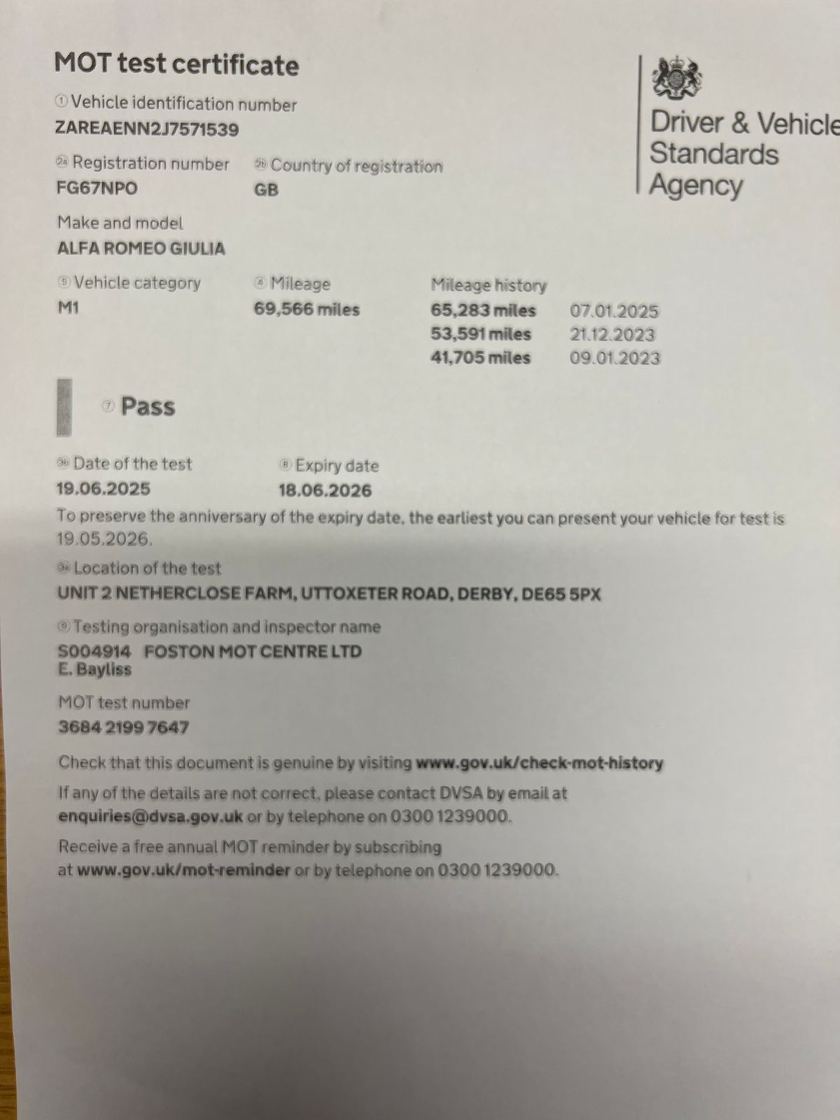 - MOT Until June 2026 - No Advisories