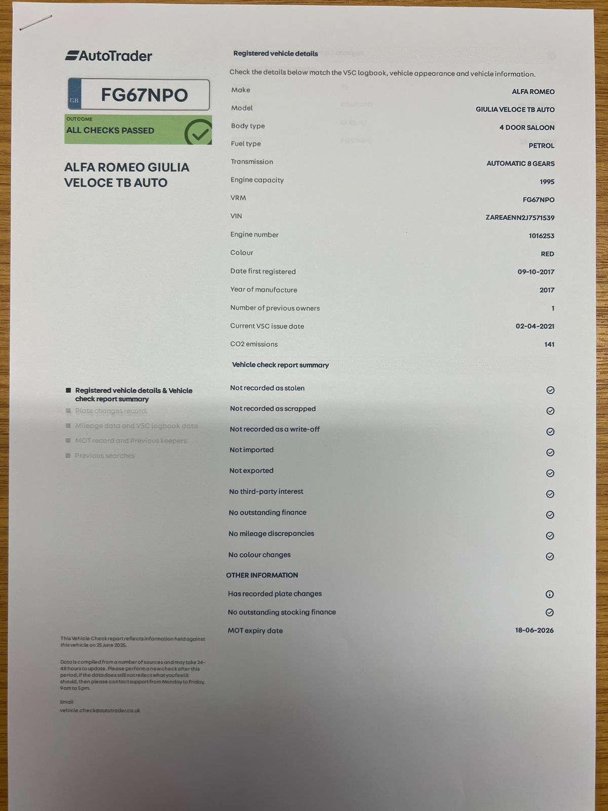 - Serviced in June 2025